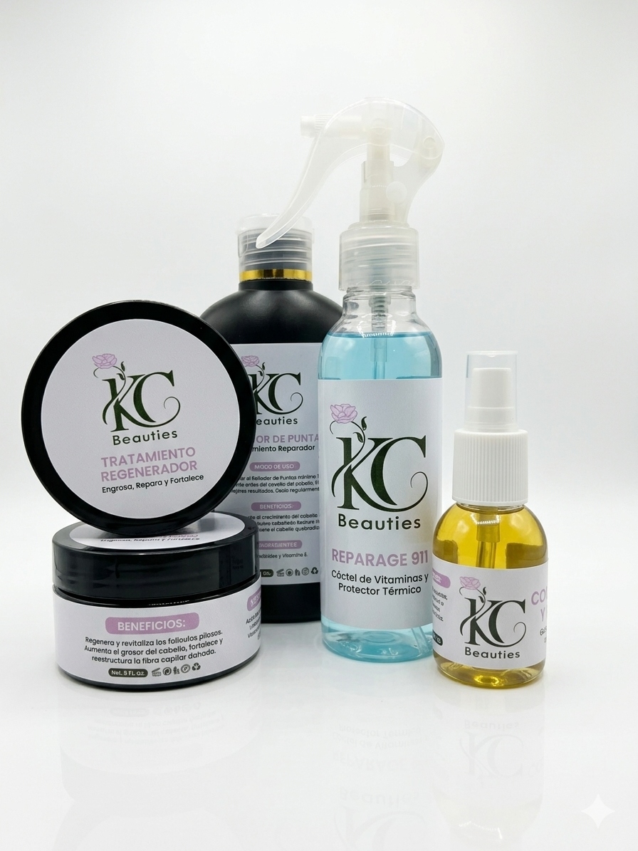 Combo de 4 productos profesionales diseñados para brindar protección total, reparación profunda y regeneración completa del cabello.